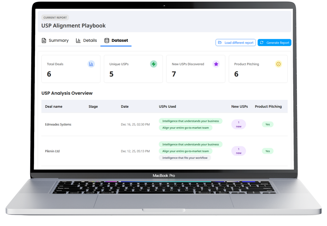 Stakeholders want to know your product is landing. Hive tracks how often each USP is tied to buyer pains across calls, then converts into a clean (and crucially objective) report you can send to the board.