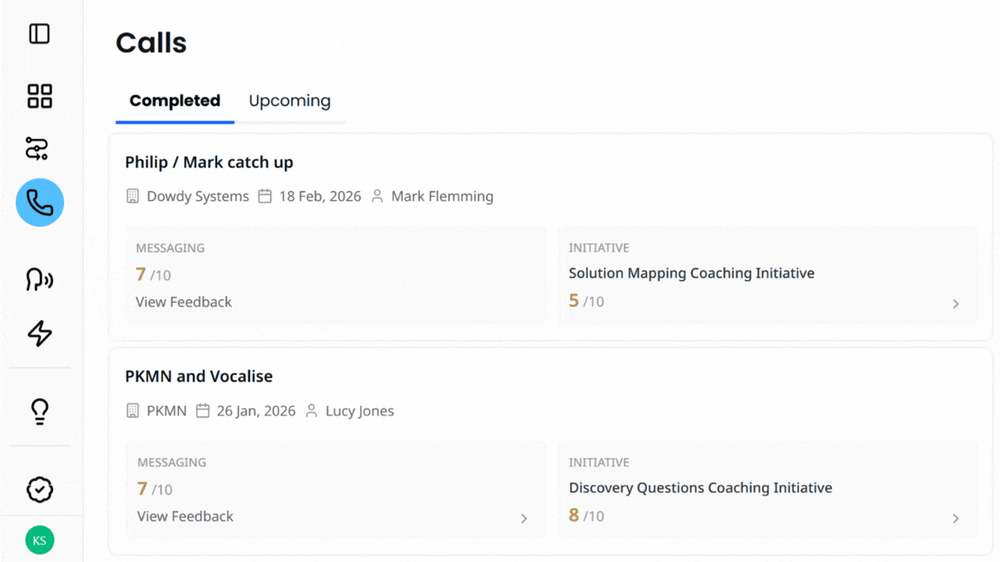 - Review previous calls alongside the insights, scores, and feedback Hive has already generated