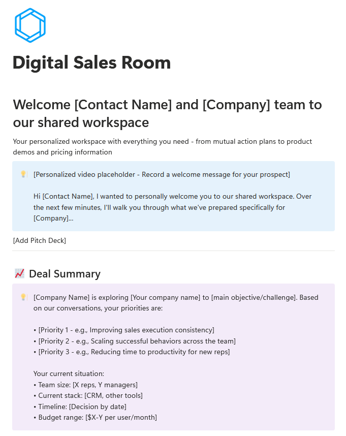 This isn’t a generic framework. It’s a ready-to-use Notion deal room template built specifically for live B2B opportunities.
